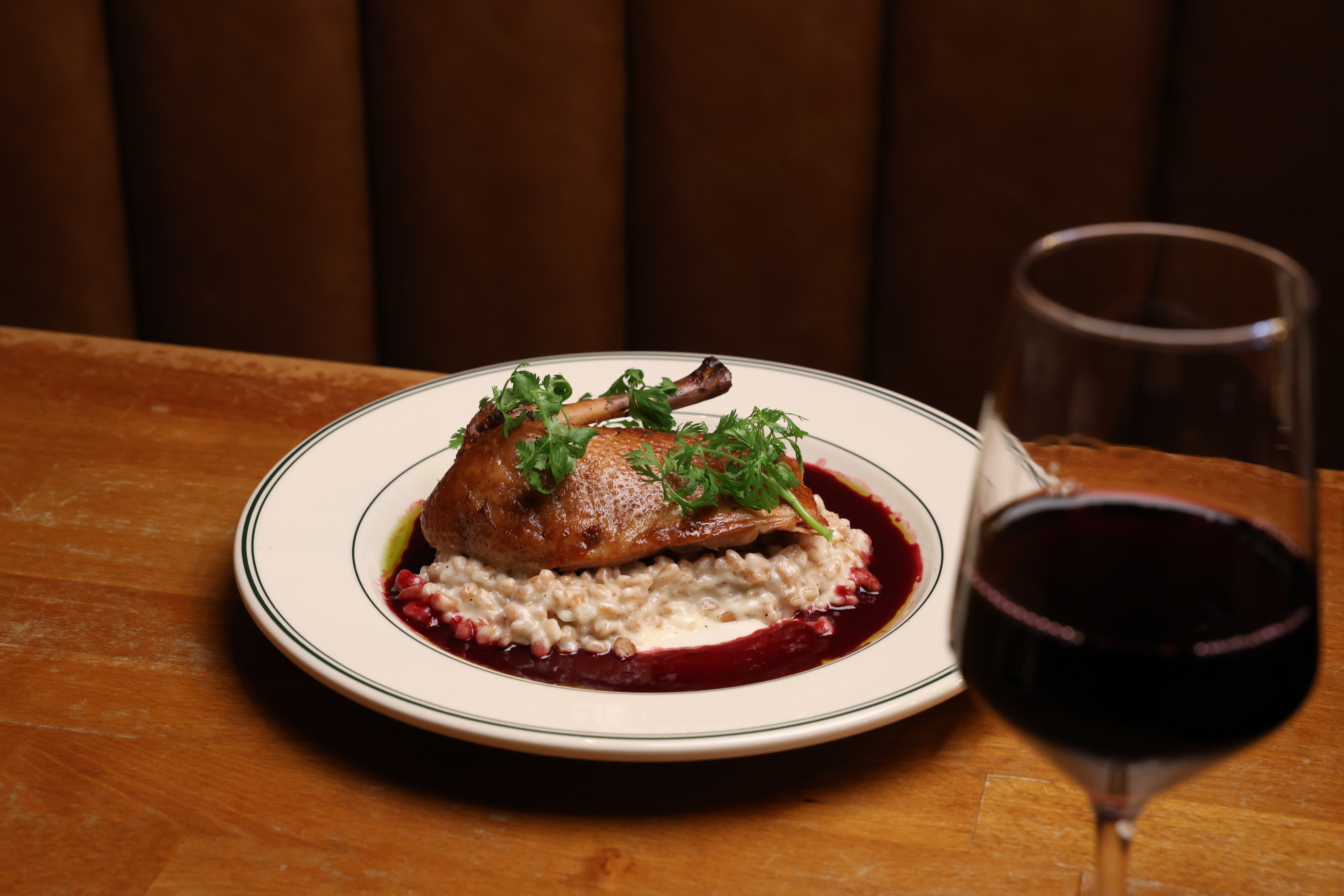 Our expanded space blends industrial character with elegant design, creating an atmosphere that is both sophisticated and welcoming. Clean architectural lines, warm textures, and an intentional layout allow the dining room to transition seamlessly—from intimate dinners to energetic nights filled with conversation and celebration.